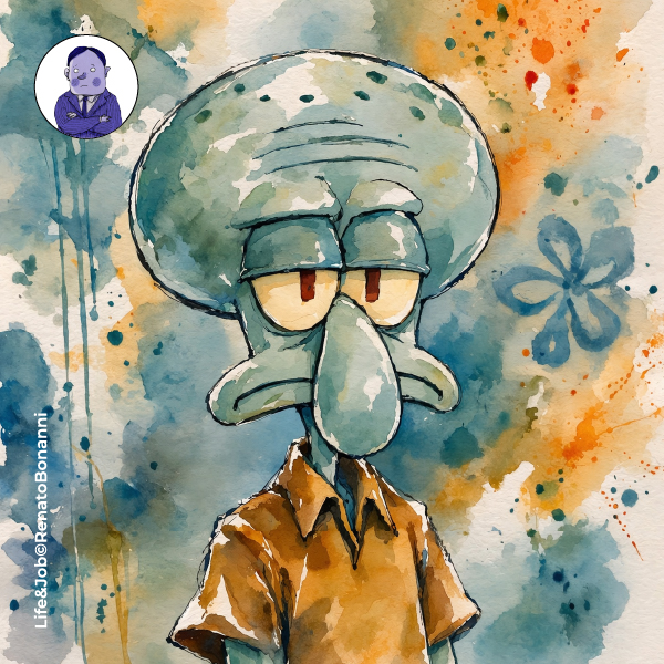 Fa il suo lavoro ogni giorno con precisione. Solo che quel lavoro non gli ha mai detto niente. Squidward sa stare dietro a una cassa, sa gestire i clienti, sa fare ciò che gli viene chiesto. Ma la musica, l'arte, tutto ciò che lo fa sentire vivo, resta chiuso in casa sua, coltivato a metà, mai abbastanza. È uno stacanovista perché le sue competenze non sono mai state al servizio di ciò che ama davvero.